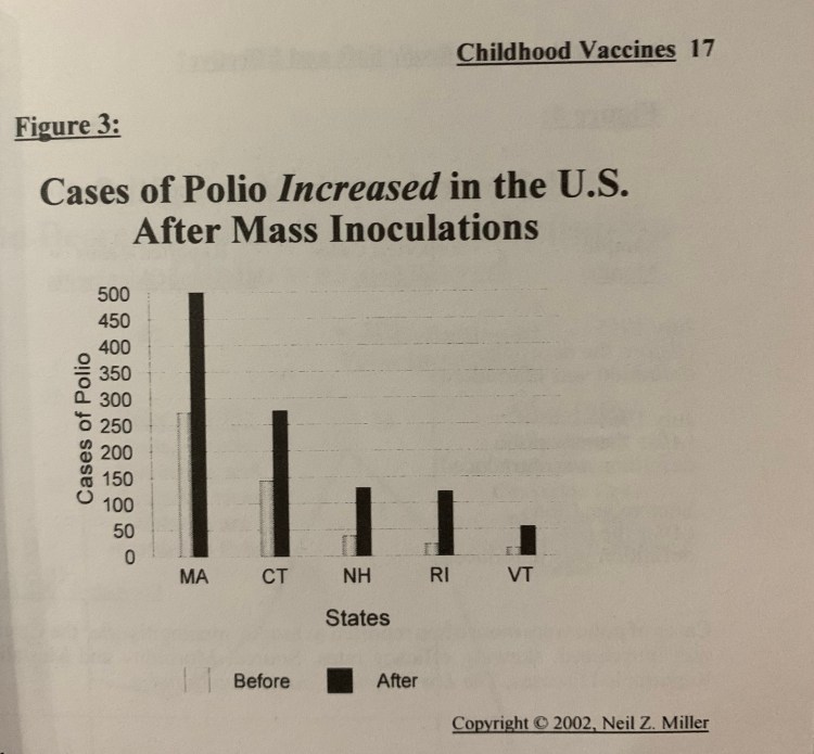 Yet, in addressing the possible factors that contribute to decreased health, the increased immunization patterns especially of young children must be closely examined and analyzed in relation to the health trends in America. Neil Z. Miller, who is a medical researcher and journalist, defines vaccines in his book Vaccines: Are They Really Safe and Effective, as “injections that contain weakened amounts of the disease that they are meant to protect against,” in hopes that by injecting the body with a small amount of the very sickness, the body will produce antibodies to fight off the harmful disease. While the idea seems promising, the rise of many diseases have been documented after the vaccine for each given disease was distributed. In examining Polio and the vaccine that was specifically designed to combat the disease, several studies show that the vaccine actually increased the likelihood to contract polio, and even was shown to have began at the site of the injection. A study was completed and published by the New England Journal of Medicine in 1995 that reported children who received the polio vaccine were 8 times more likely to contract polio than the children who never received the vaccine. Situations such as this reoccurred in a similar manner throughout many sicknesses such as measles, mumps, tetanus, pertussis, chickenpox, hepatitis a and b, as well as others as simple as the common flu.